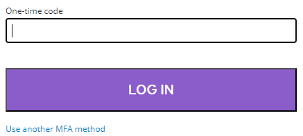 Oletuksena vahvistukseen pyydetään ensimmäisenä rekisteröimääsi MFA-menetelmätyyppiä. Voit vaihtaa toiseen menetelmään klikkaamalla "Use another MFA method" -linkkiä, jos et voi käyttää ensisijaista todennusmenetelmää.