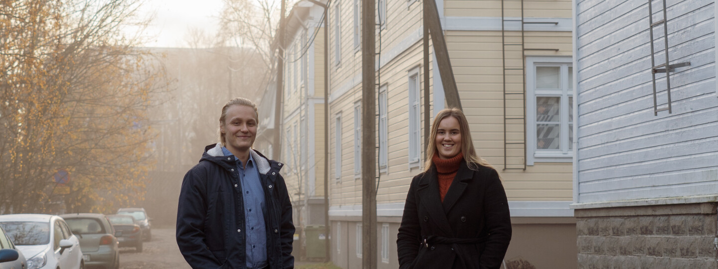 Kansainvälisen liiketoiminnan opiskelija Noel Snygg ja tietojärjestelmätieteen opiskelija Aliisa Mäkinen ovat kummatkin ylpeitä kauppakorkealaisia. Heille kauppakorkeakoululaisuus merkitsee opiskelua arvostetussa opinahjossa, jolla on rikas historia ja vahvat suhteet työelämään.